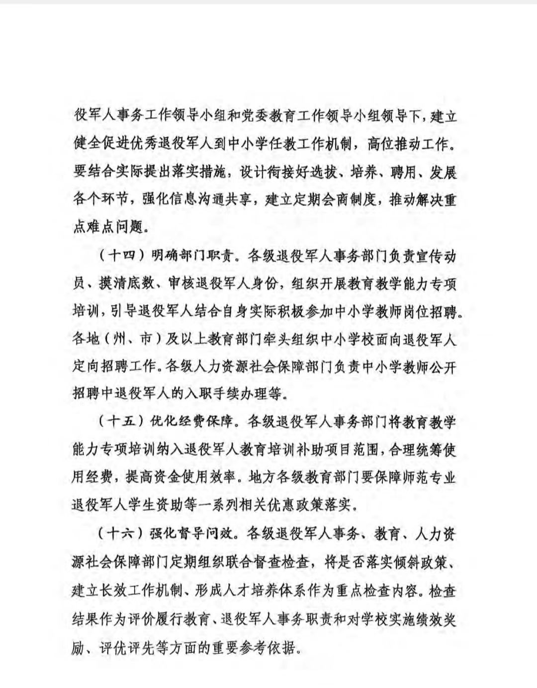 关于促进优秀退役军人到中小学任教的实施意见 自治区退役军人事务厅发〔2023〕10号