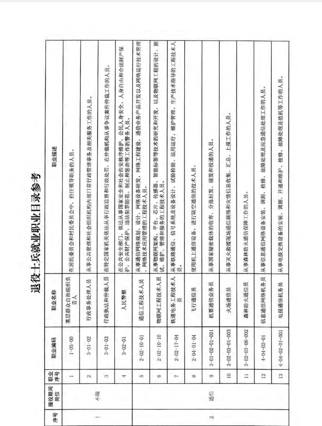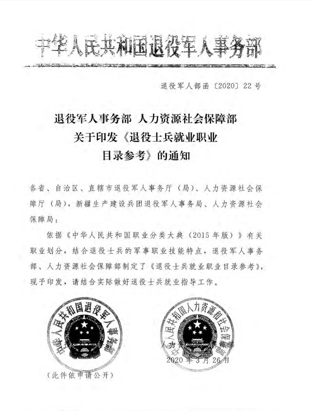 《关于印发《退役士兵就业职业目录参考》的通知》 退役军人部〔2020〕22号
